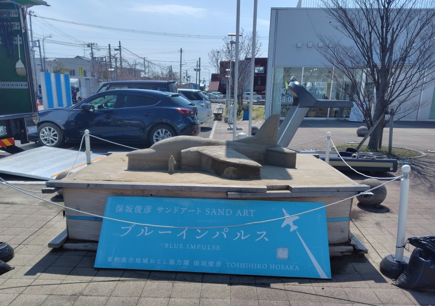 作業現場の脇にブルーインパルスのサンドアートがあり、時折訓練中と思われる音が聞こえてました。