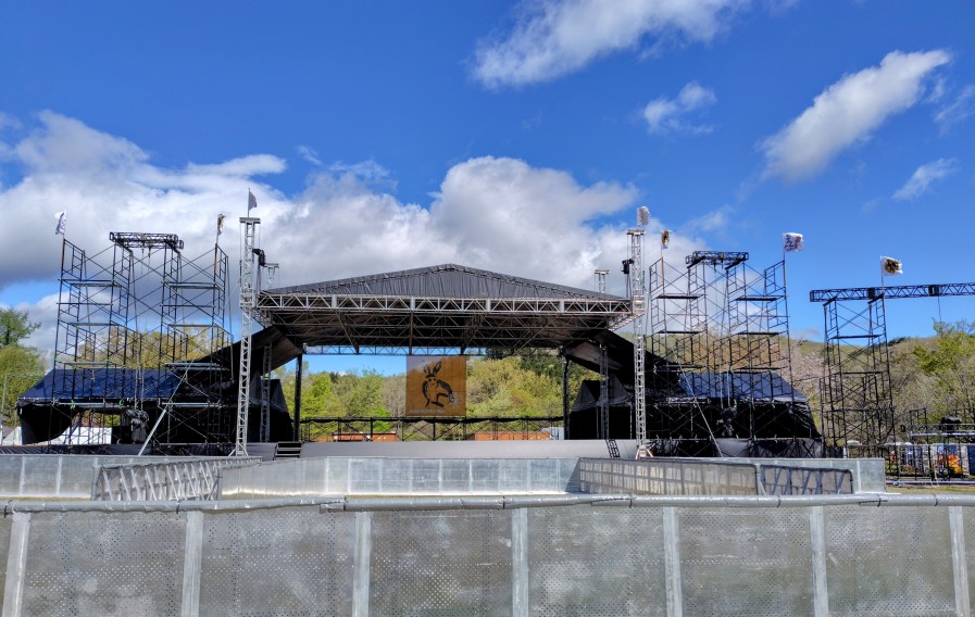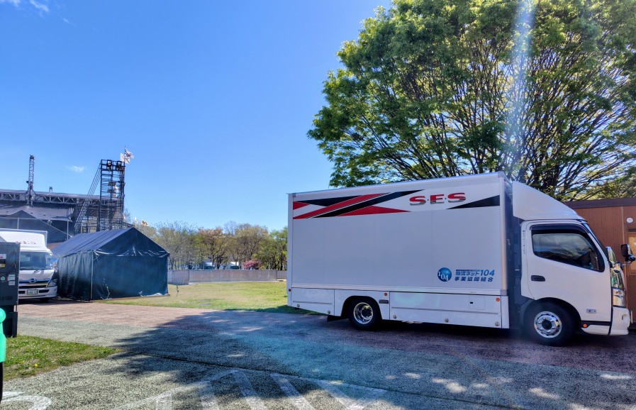 本日は週末開催のアラバキロックフェスで使用する照明機材の搬入に伺って来ました。