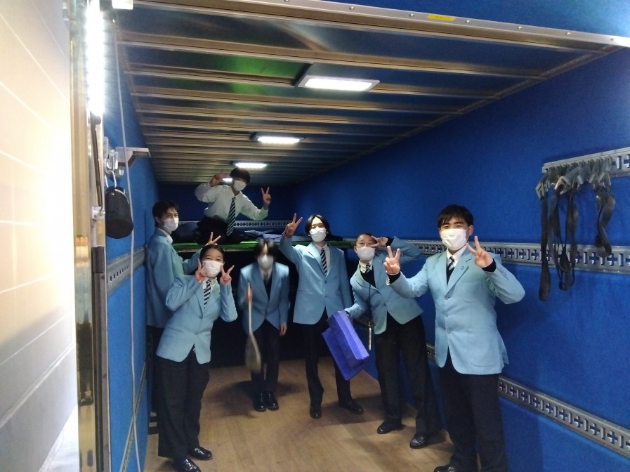 荷降ろしの忙しい中生徒さん達にブログ用写真とるよと言ったらみんなニコニコで写真撮らせて頂きました(^^)