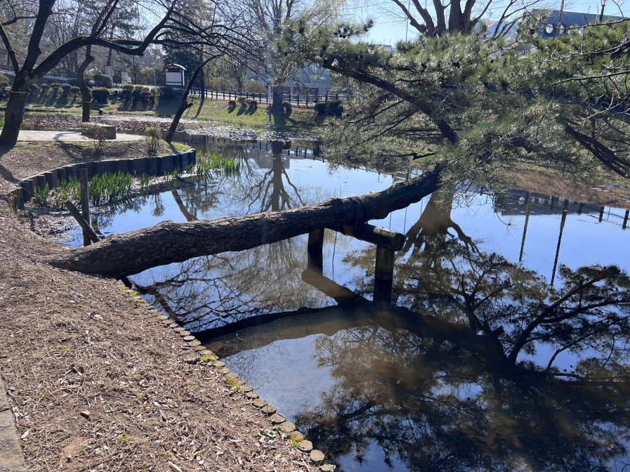 真横に伸びる松の木。