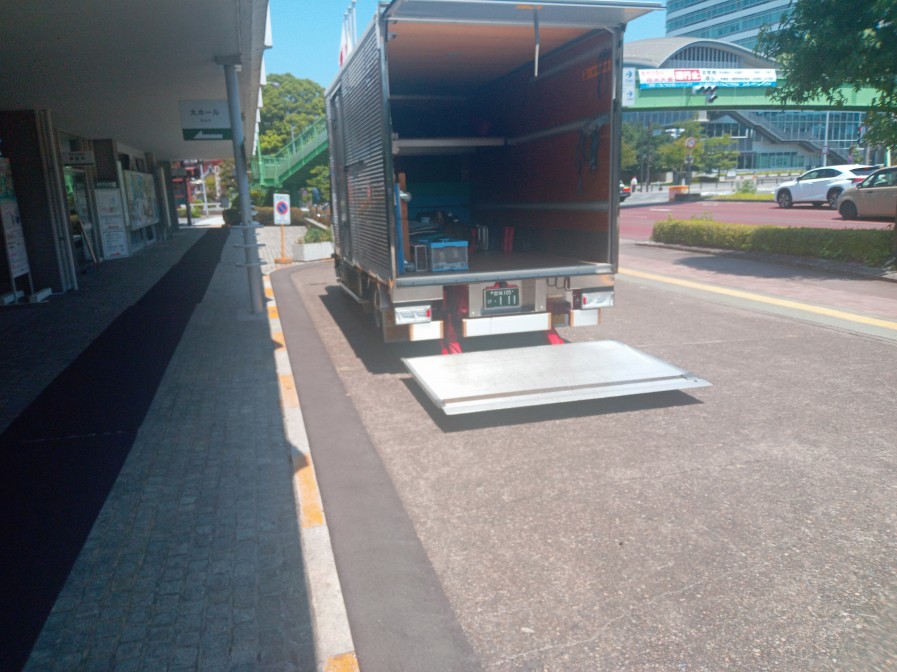 おはようございますm(_ _)m秀光中学校で楽器運搬してます。今日岐阜🌡️38度〜😅暑い(・∀・)練習会場です