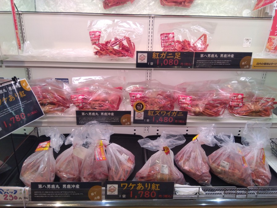 紅ズワイガニ(訳あり)ってなってますけど、ここまで安いとワケがあろうがなかろうが関係ないっしょ!!!生モノ買っても持ち帰れないのに少し悩んで道の駅をあとに😅