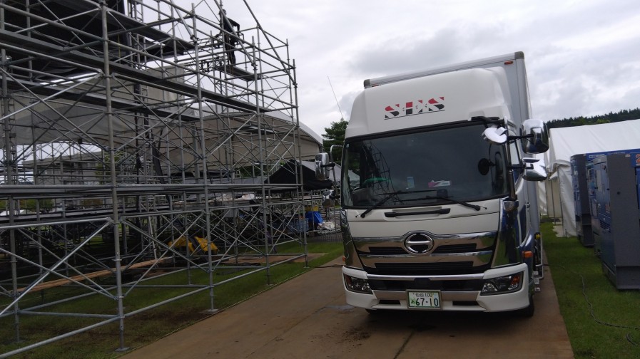 本日は秋田キャラバンMUSIC FESで使用する照明機材搬入のため秋田県は能代市の二ツ井中央公園に来ております。