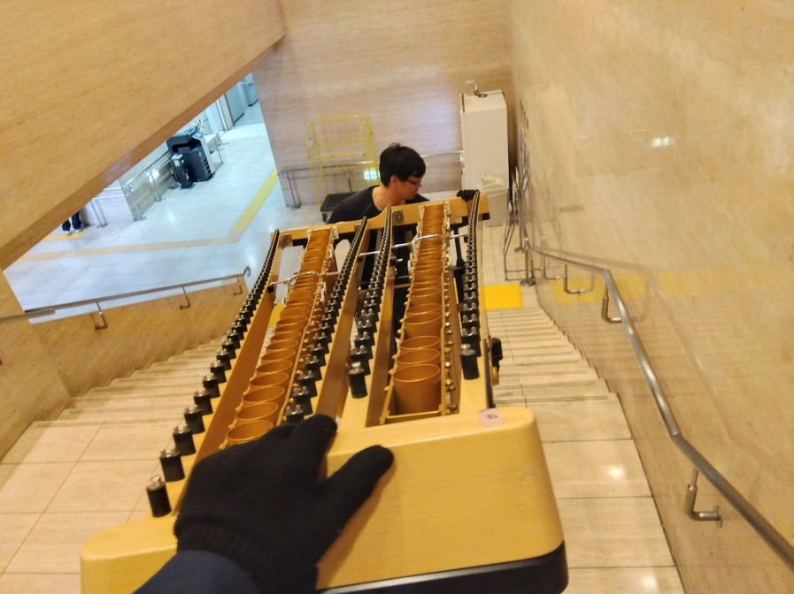 本日は電力ビル1階にございますアクアホールへマリンバ✕3台の運搬依頼♪