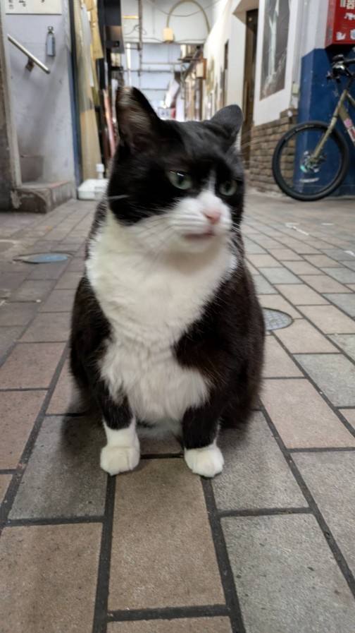 帰りに路地を歩いていたら、名物の太っちょ猫を発見
