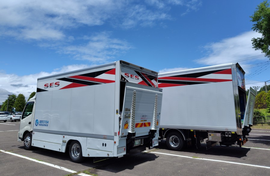 中総体野球⚾️2日目の応援会場はシェルコム仙台にて応援になります。前の試合では弊社の4トン車が待機中でした。
