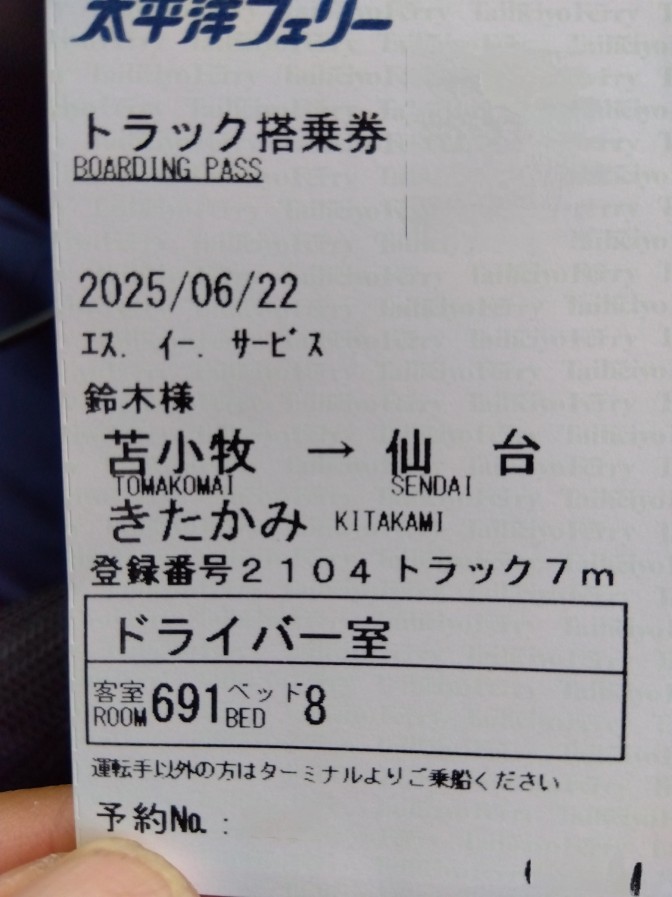 太平洋フェリー往復路ともに(きたかみ)です♪