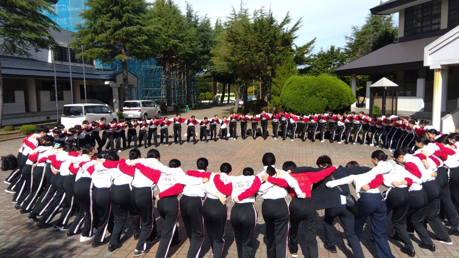 当日の最終練習も終わり、本番に向けての円陣で指揮をあげております。