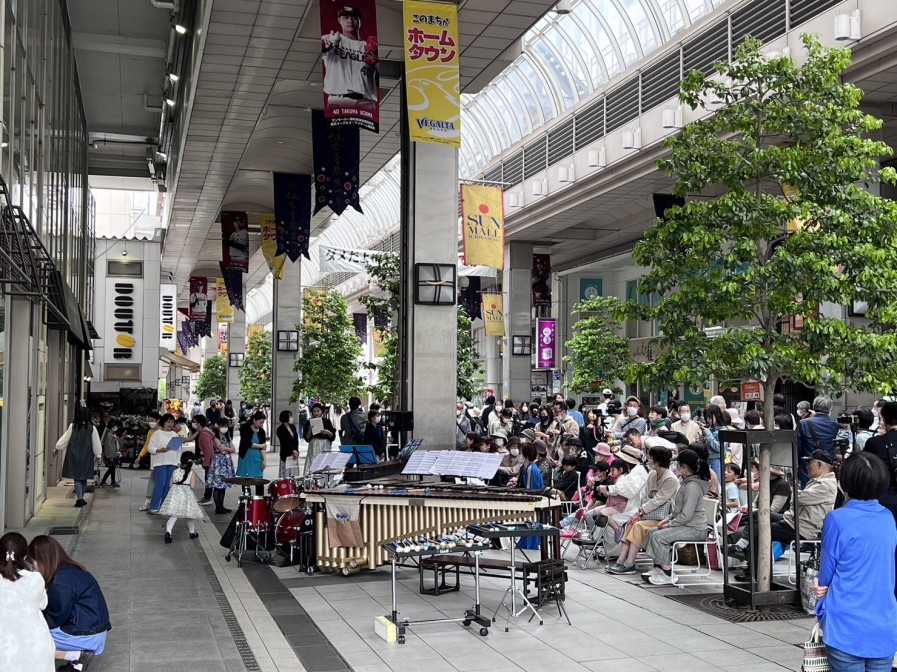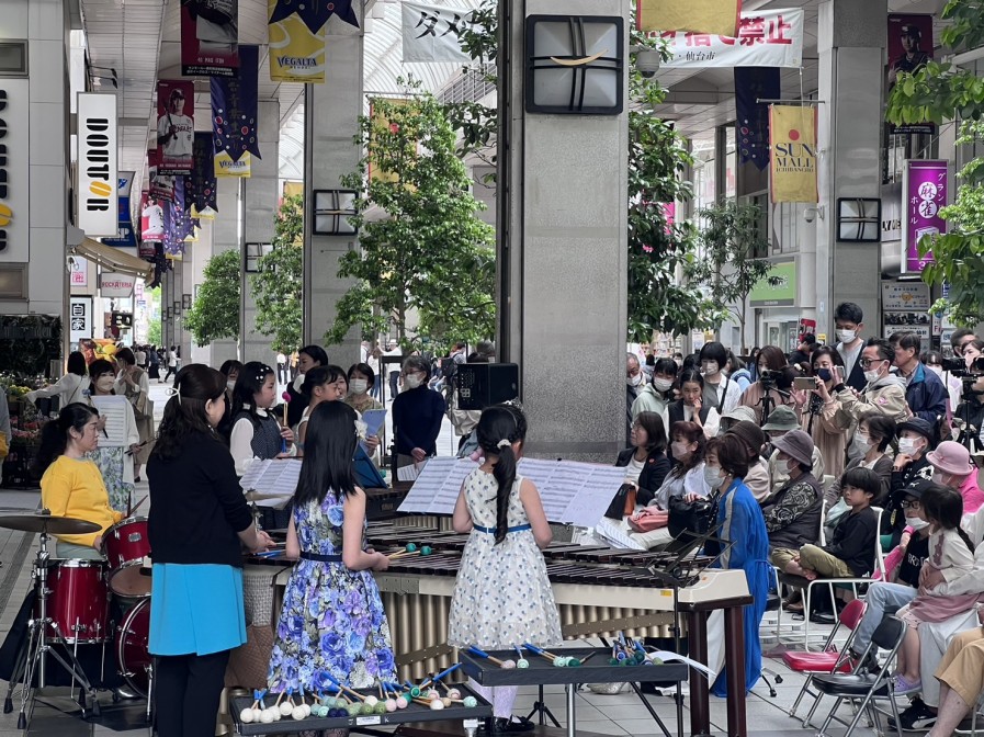 アーケードの中での演奏とゆうことで歩行者の方々も足を止めて聞いてました(^^)